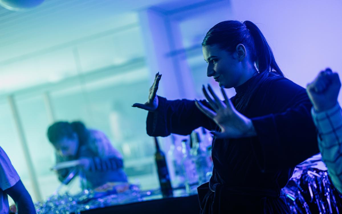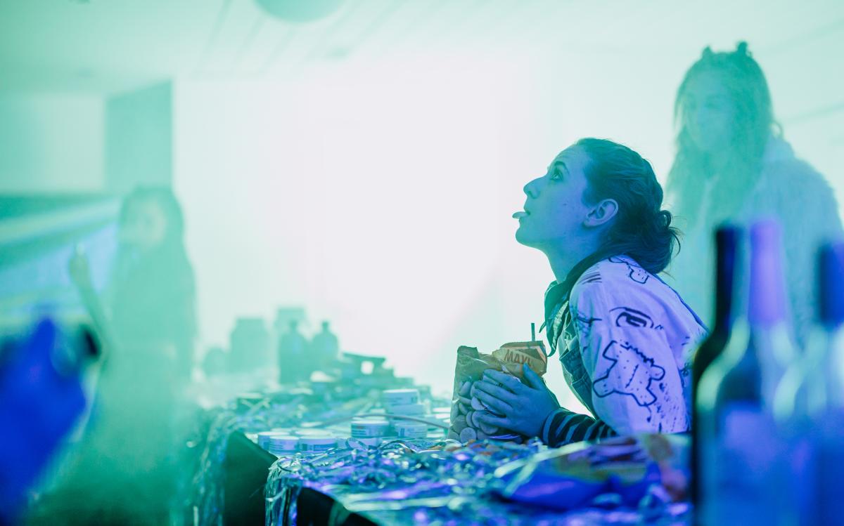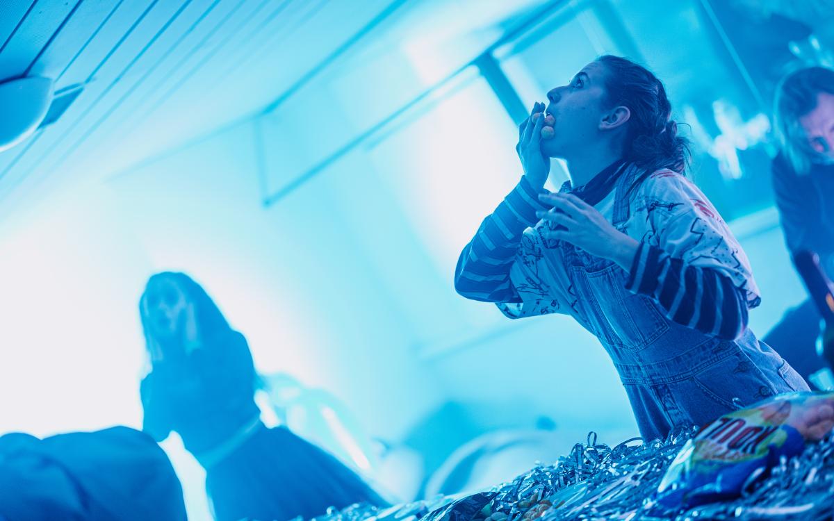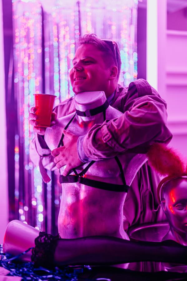 Představení se odehrává z velké většiny ve všech prostorách divadla (i mimo něj) s omezenou možností se posadit.