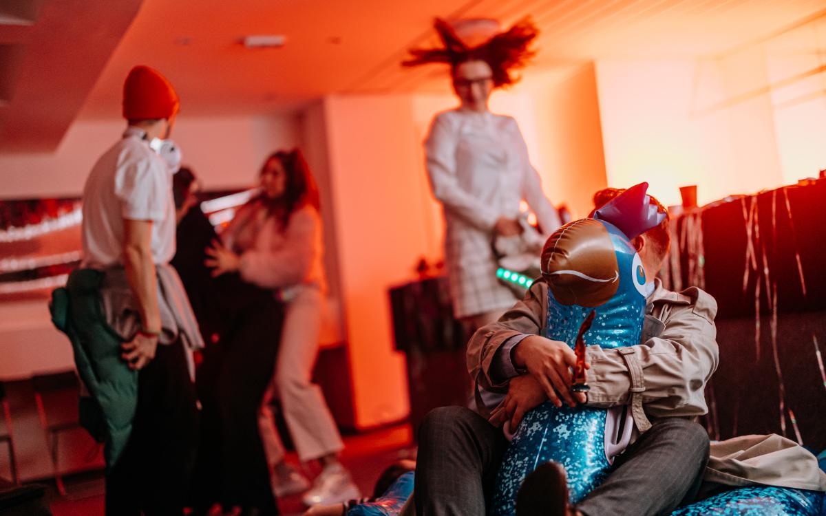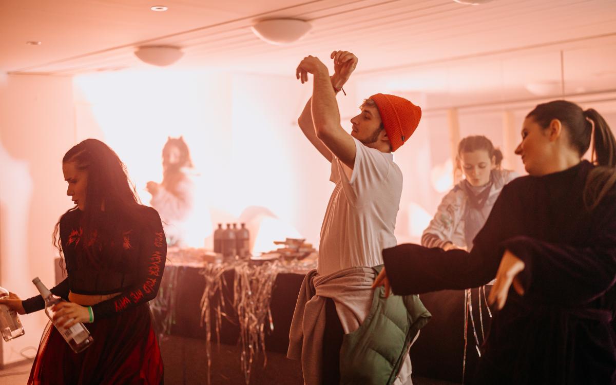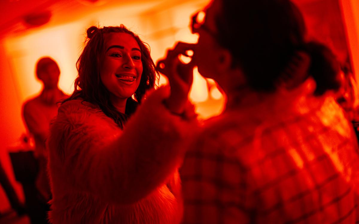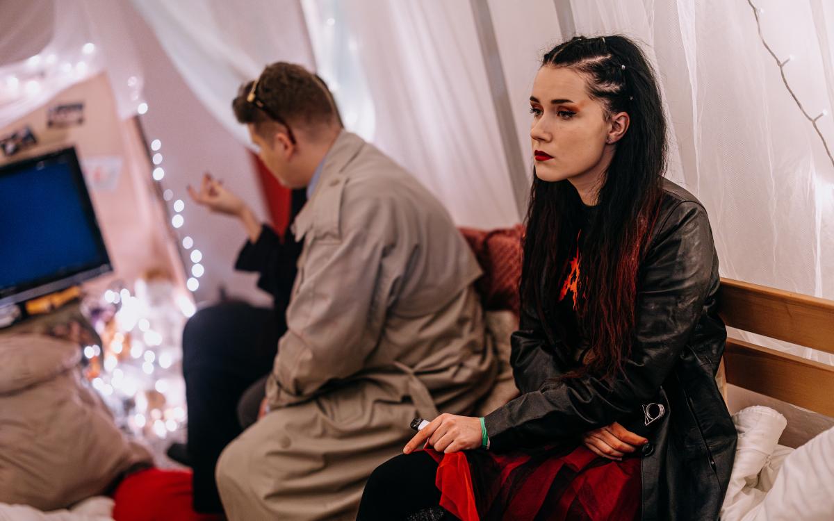 Představení se odehrává z velké většiny ve všech prostorách divadla (i mimo něj) s omezenou možností se posadit.