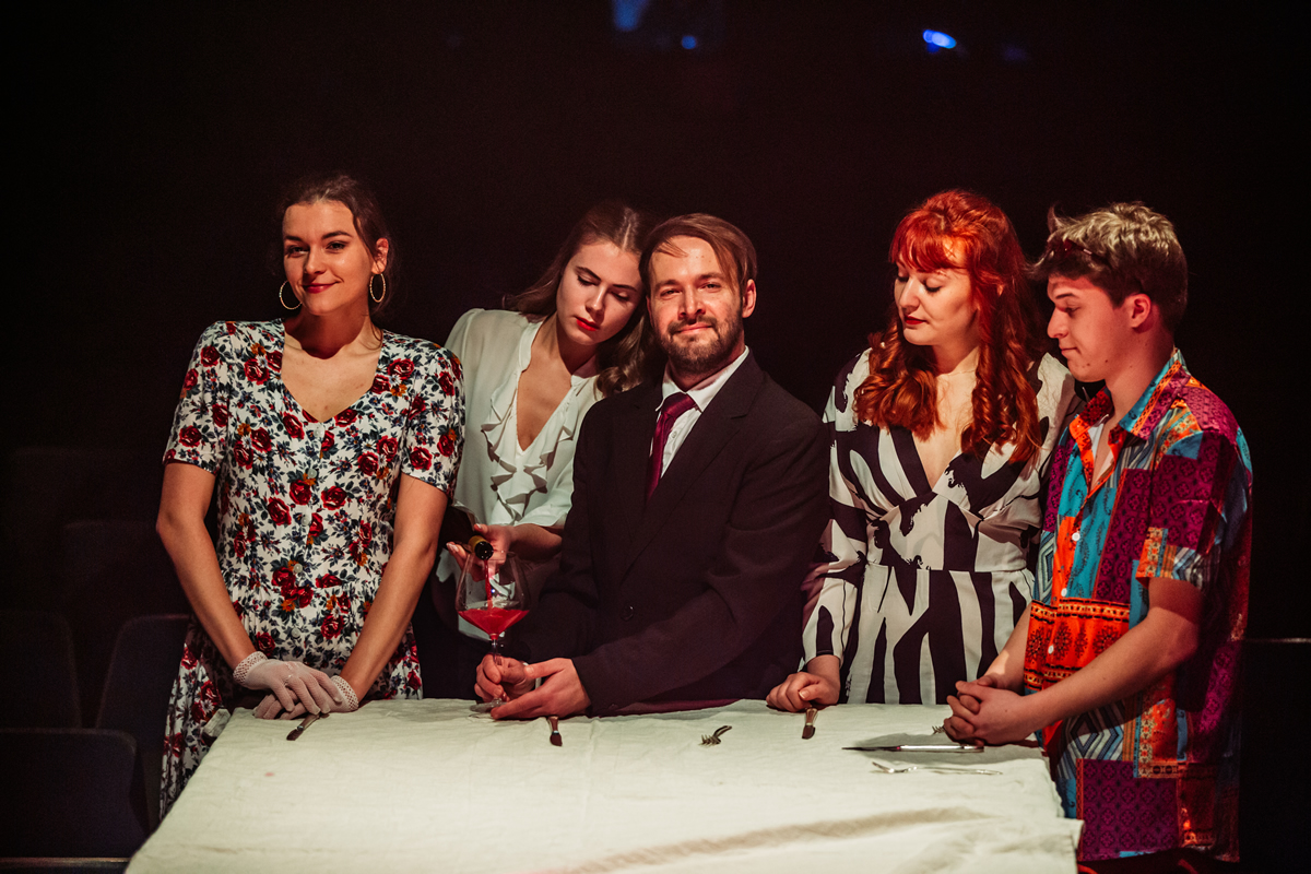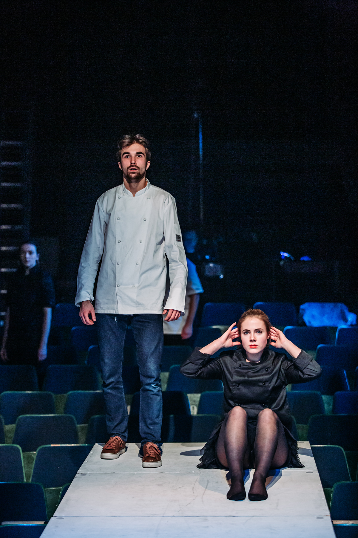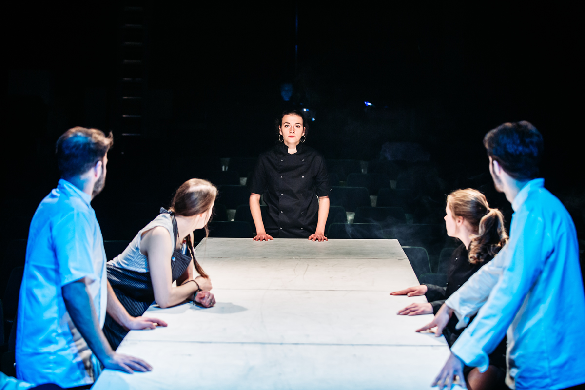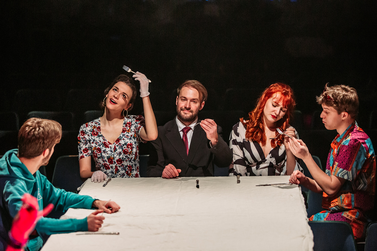 Fenomén „Jídlo“ ve čtyřech chodech. Od fastfoodu po fine dining! Nekompromisní divadelní sonda do oblasti potravin, potravinářství a gastronomie - pojmů, které bez přehánění hýbou světem. Čtyři chody - to jsou čtyři úhly pohledu na téma, které od nepaměti rezonuje společností, dnes - v době eskalujících celosvětových krizí, o to víc. Divadelní degustační menu, které nabízí tvrdou realitu s krutou nadsázkou a graduje sladkou třešinkou na dortu v podobě pikantní tečky.